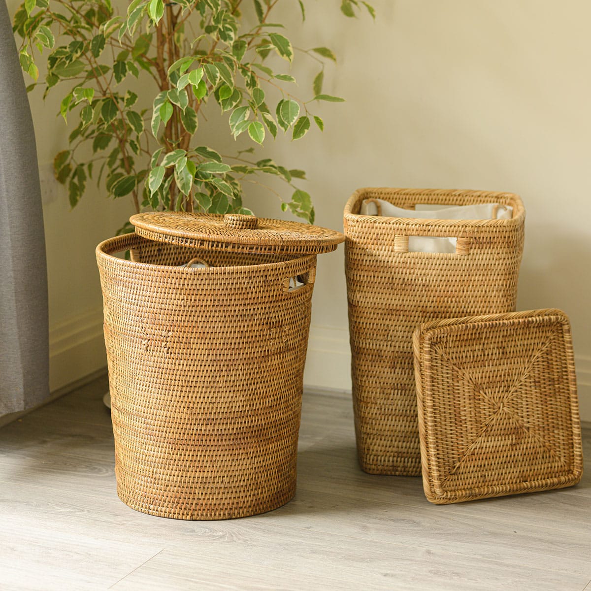Bring warm sophistication to your laundry space with this elegantly tapered round hamper in rich honey brown tones. Our skilled Myanmar artisans hand-weave each piece using natural rattan and time-honoured techniques, creating the distinctive warm colour through traditional finishing methods. The graceful tapered form maximises capacity whilst maintaining an elegant footprint. Complete with fitted lid and removable cotton liner featuring five secure hooks, this hamper transforms everyday necessity into decorative beauty. Perfect for bedrooms, bathrooms, or dressing areas where style matters. Gentle variations in colour and texture celebrate authentic handcrafted character.